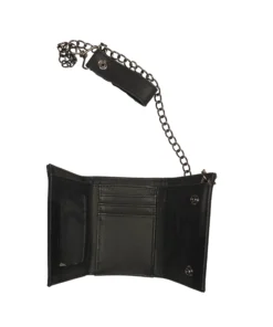 Fabricada en piel vegana de alta calidad combinada con tela resistente, la Chucky Best Friend Cartera asegura durabilidad y estilo. Su cadena negra permite llevarla de manera segura como cartera de mano o colgada al estilo crossbody, ofreciendo versatilidad y practicidad. Este accesorio no solo es visualmente impactante, sino también funcional, permitiendo organizar billetes, monedas y tarjetas de manera segura. Su tamaño y diseño la hacen ideal para el uso diario, así como para complementar looks alternativos, góticos o inspirados en la moda urbana y del cine de terror.