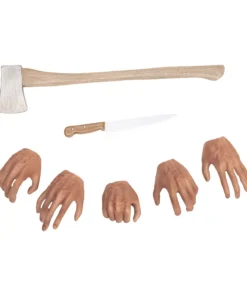 Esta figura posable mide aproximadamente 30 cm de altura y tiene más de 30 puntos de articulación.La figura incluye: jack-o’-lantern iluminado, 3 manos intercambiables, un cuchillo y un hacha. Completamente vestido con un traje fiel a la pantalla con cremallera funcional.