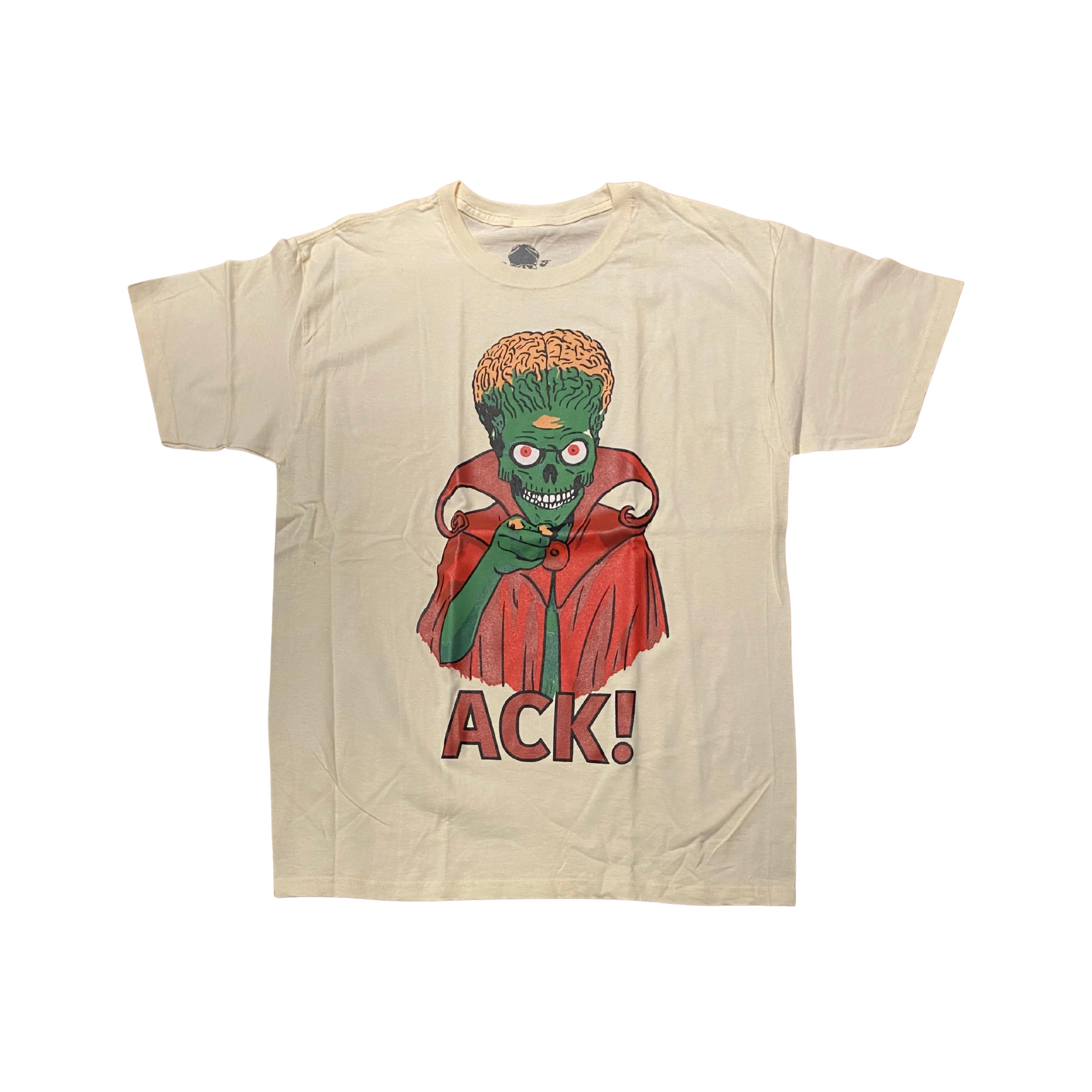 La Mars Attacks Ack playera es una prenda imprescindible para los fanáticos del cine retro y del humor absurdo de la película Mars Attacks!. Este diseño exclusivo muestra a uno de los extraterrestres más icónicos de la cinta con su casco de vidrio y ojos saltones, acompañado de la famosa frase “Ack”. La combinación de colores vivos, el detalle del personaje y la frase hacen que esta playera sea perfecta tanto para coleccionistas como para amantes de la moda alternativa.