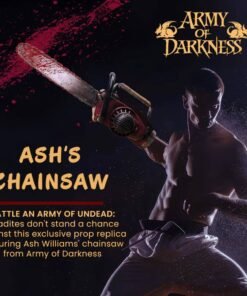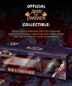 Esta exclusiva pieza electrónica reproduce a la perfección la icónica motosierra de Ash Williams, lista para eliminar a los perversos deadites con cada detalle sangriento y realista.