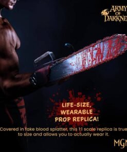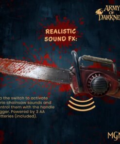 Su diseño resistente y marcado por la batalla ha sido meticulosamente elaborado para reflejar la brutal realidad de la incansable lucha de Ash contra los no muertos. Cubierta con salpicaduras de sangre falsa, esta réplica a escala 1:1 es fiel al tamaño real y te permite llevarla puesta. Con solo activar el interruptor de encendido/apagado, la motosierra cobra vida y emite efectos de sonido realistas, añadiendo un nivel extra de autenticidad.