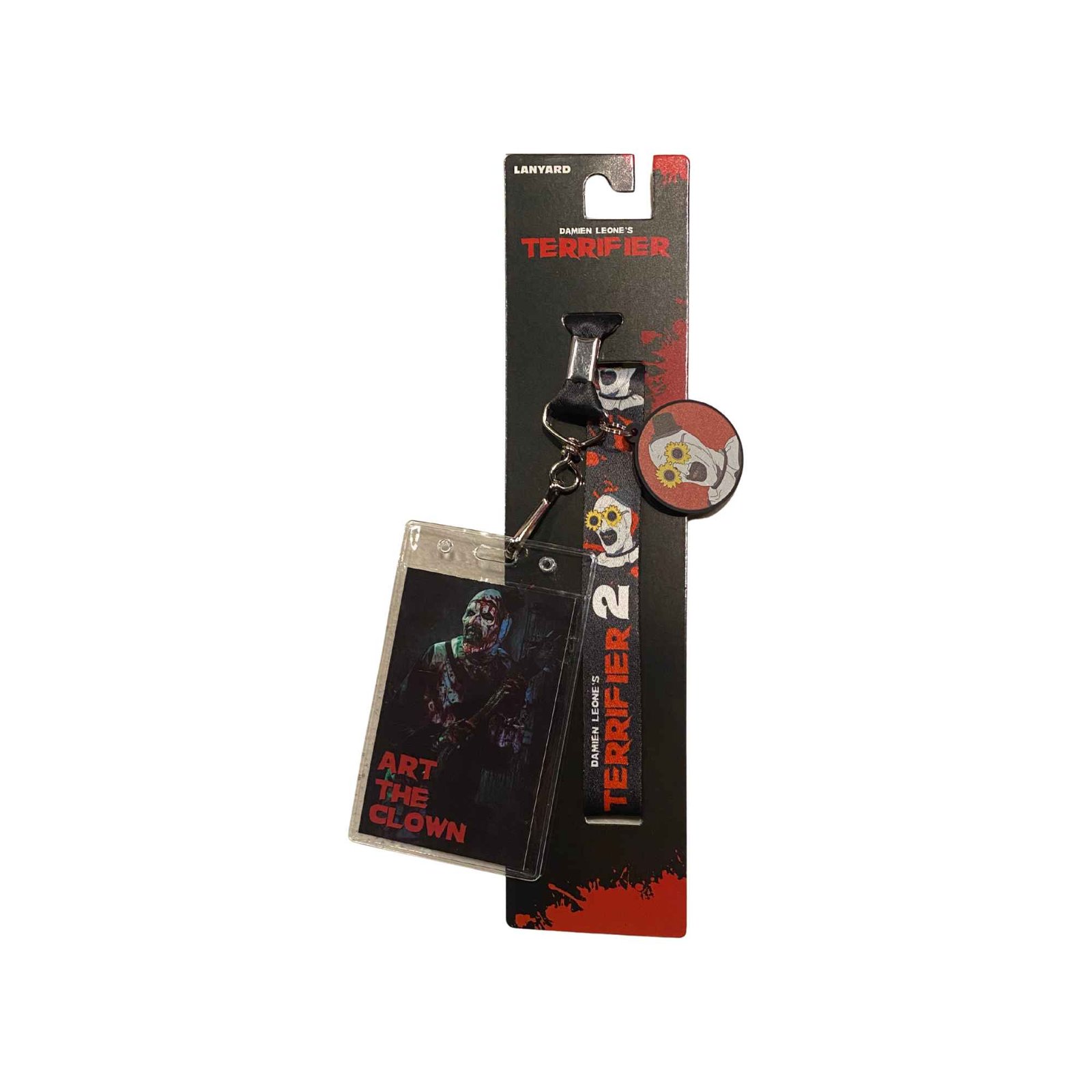¡Lleva el horror contigo a todas partes! Este lanyard / Terrifier Art Porta Gafete está inspirado en Terrifier 2 y es el accesorio perfecto para fanáticos del cine slasher que no temen destacar.