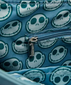 En la parte trasera, Lock, Shock y Barrel esperan para causar problemas en un bosque de bastones de caramelo. Sally y Zero, el perro fantasma, aparecen en los paneles laterales de la bolsa. Este accesorio aterradoramente divertido tiene espacio para guardar todos tus trucos y golosinas y es perfecto para cualquier fan de Disney que quiera mantener una de sus películas favoritas cerca.