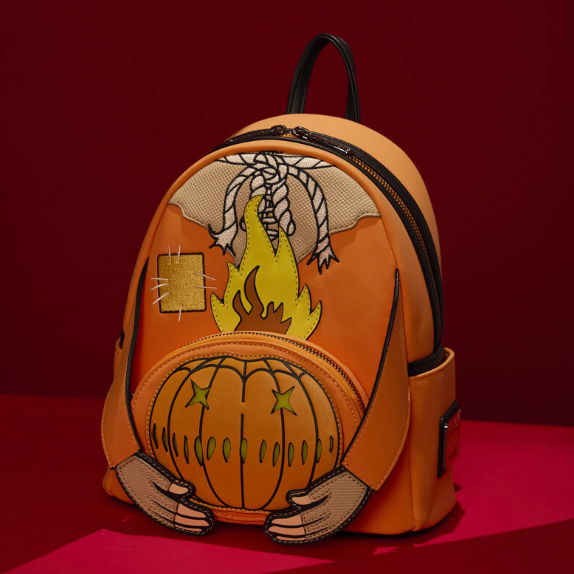 Con un acabado en piel vegana, aplicaciones de alta calidad y un sistema de luz que ilumina la calabaza y la flama en la parte frontal, la Trick R Treat Sam Mini Mochila Luminosa no solo es práctica, sino también una pieza de colección imprescindible para los amantes del horror contemporáneo.