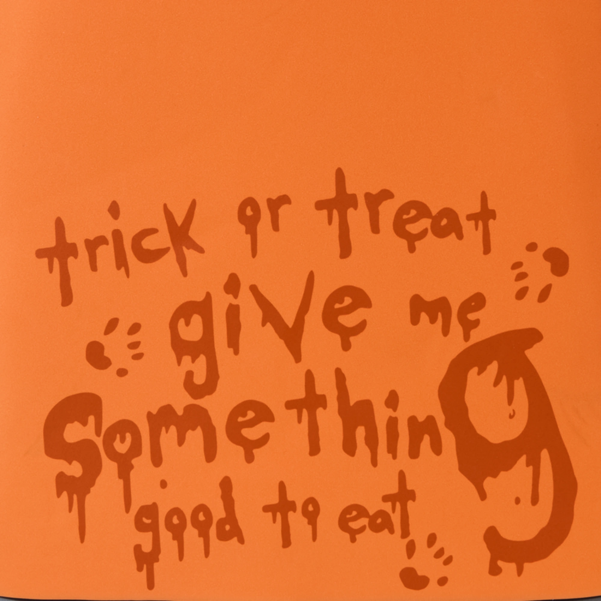 Sus brazos en aplique sostienen una calabaza que funciona como bolsillo frontal.