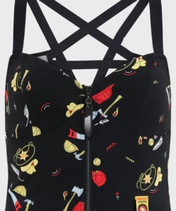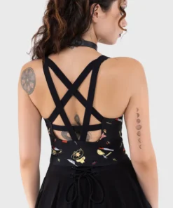 Con la marca KILLSTAR, 71% viscosa, 26% poliamida, 3% elastano.